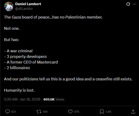 It’s worth noting that Trump did not campaign on the Board of Peace and that the $10billion “set aside” for the board and Gaza’s real estate development was literally conjured out of thin air.
