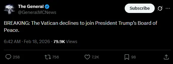 Three weeks ago, the Vatican was invited to the Board Of Peace but declined: